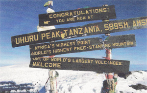 This is the opportunity of a lifetime to climb the tallest mountain in Africa. It stands majestically alone at 19,340 ft. And if you are fit, you can climb it by the Marangu route in 5 days. It isn't easy, but you can do it. You will receive a certificate from the Tanzanian government proclaiming your success.